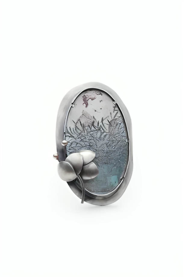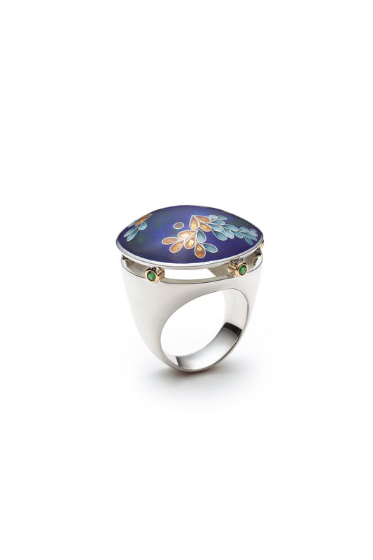 I find myself completely absorbed by the successive transformation of my enamel pieces, each step and firing marked by a tweak of the ‘unexpected’ hue or shade. The process itself, whether laying down the cloisonné wires or waiting in front of the kiln, allows me to meditate and connect with a certain alchemic magic. I strive to achieve a finish that allows my colors, shades and foil to play with the light, and provide a tactile feel that is unique to this form of jewelry.