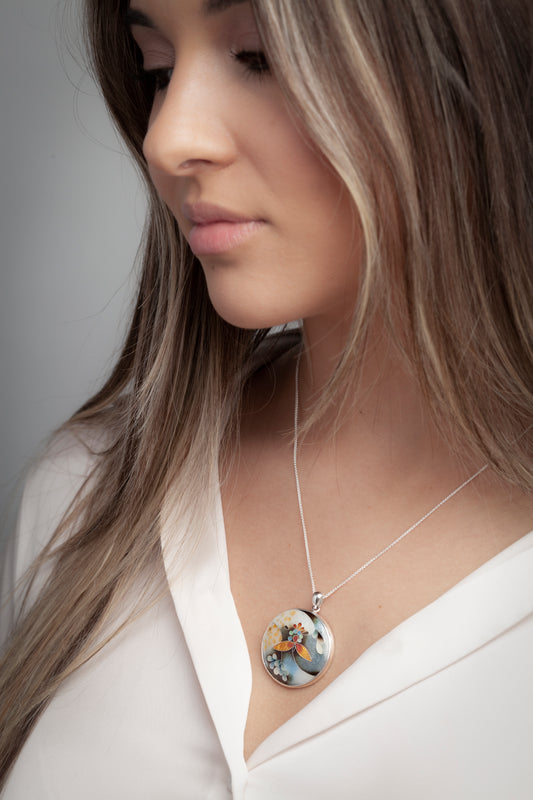 This necklace is gorgeous. It's very unique and the enamel quality was beyond my expectations. The communication with the seller was great. Also, fast shipment and beautiful packaging. I love the piece and I will order from this shop again. Thank you!