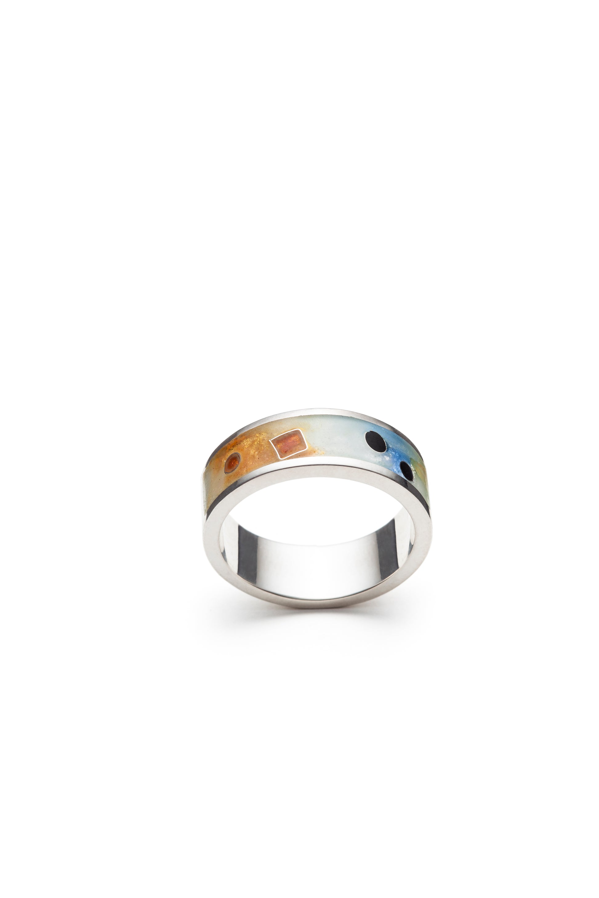 Fine silver (999) ring adorned with cloisonne enamel design. 24K gold leafs provide accent to the ring.